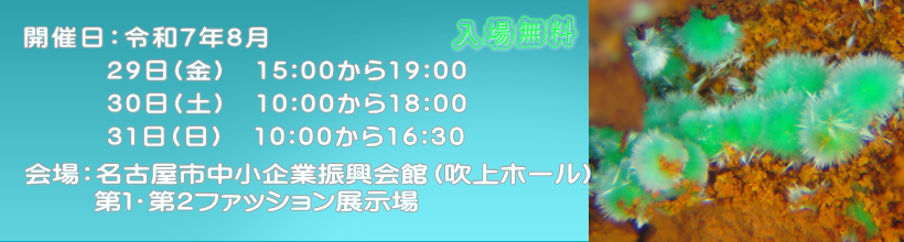 令和7年8月 29日(金) 15:00から19:00 30日(土) 10:00から18:00 31日(日) 10:00から16:30